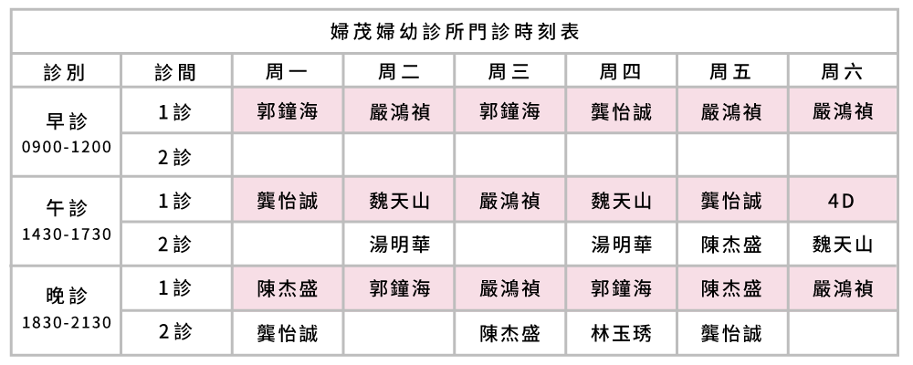 婦產科、生殖中心掛號報到時間